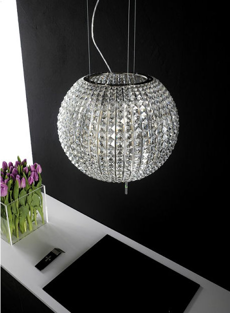 The extractor that looks like a disco ball is an Elicia Celestial Extractor made of glass and stainless steel and retails at about £1800 and if you’d like a remote control its an extra £149 though some retailers are throwing this in as a freebie. It really does look like a very posh light fitting and nothing like an extractor.